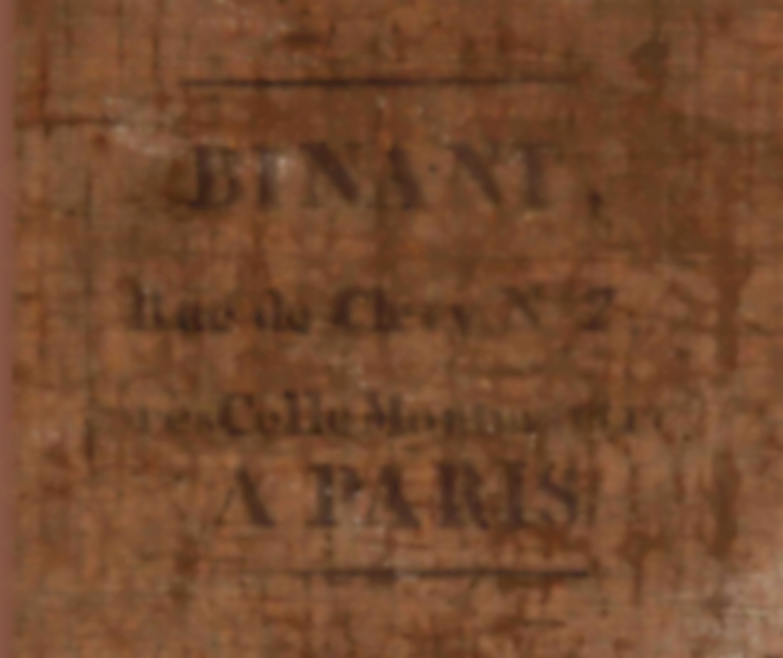 1857Catalogue de la collection de Tableaux et Miniatures de M. Binant Père, dont la vente aura lieu après son décès. Vente Paris, Hôtel des Commissaires-Priseurs, Salle no 5, lundi 19 janvier 1857, commissaire-priseur : Me A. Pouchet ; experts : M. Francis Petit, Paris, Imprimerie Maulde & Renou. Version numérique disponible ici.